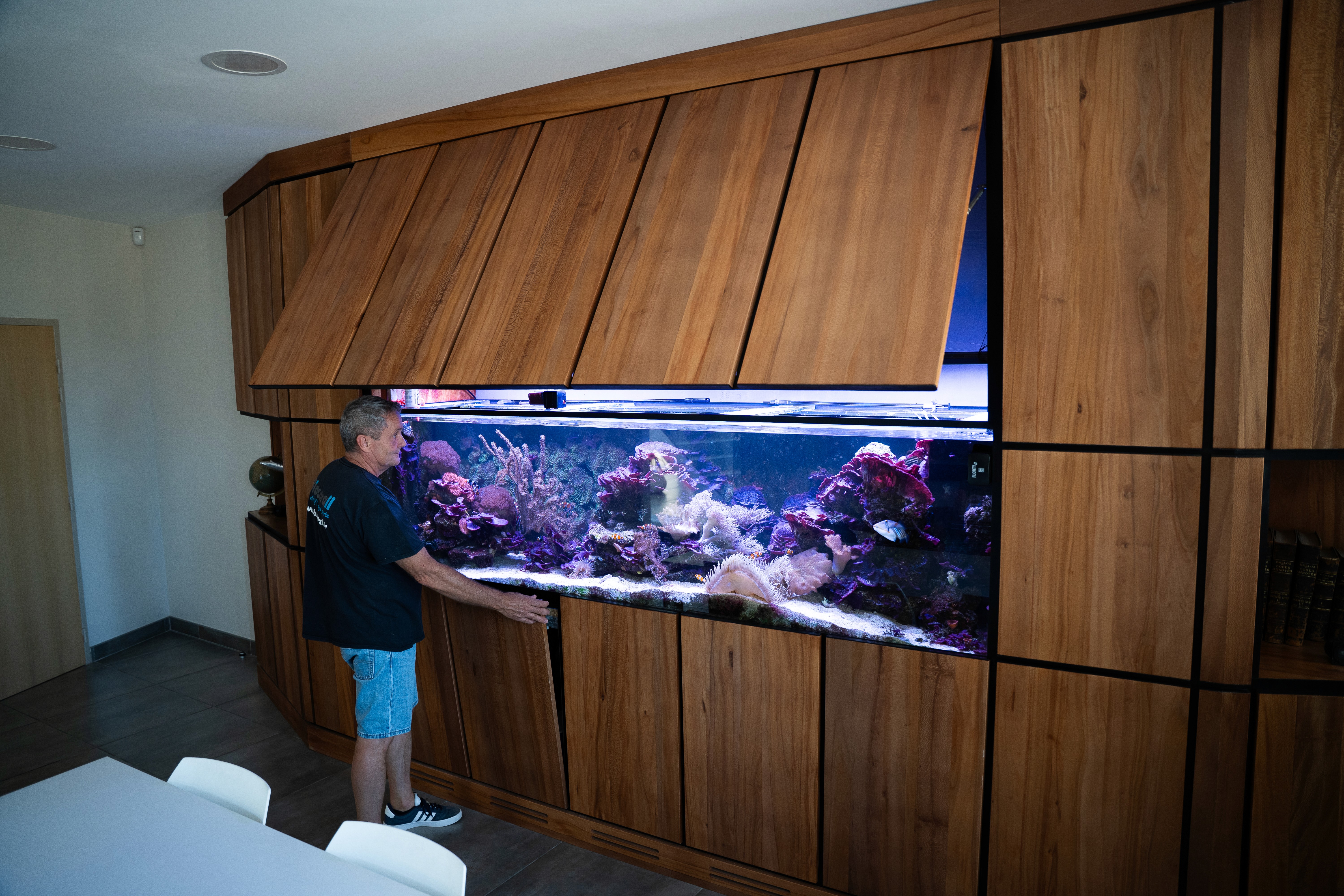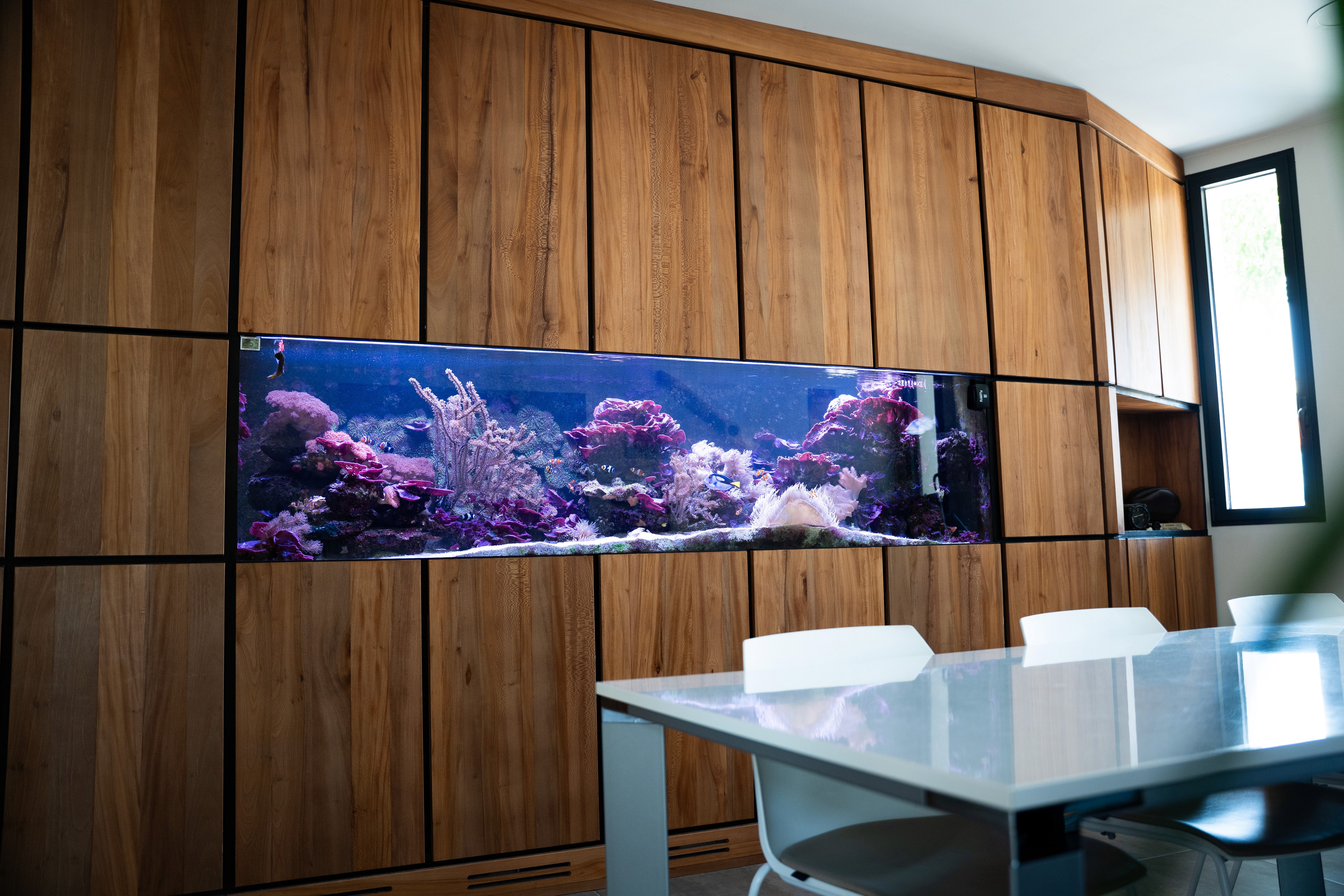 Une fois la conception validée, nous fabriquons votre aquarium dans notre atelier avec du verre français haut de gamme. Notre exigence vous garantit un rendu durable, épuré et parfaitement adapté aux espèces qui y vivront.